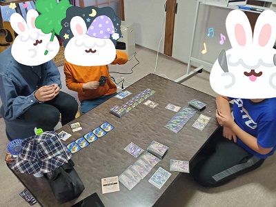 また別の日にはデュエマで3人デュエルをしていました! 多人数でやると相手が複数いるので、それぞれの動きを予想ながらプレイする訳なんですが、それがみんな楽しそうでした(^ω^) みんなでやるのもいいですね(´▽`) またやりましょう!!